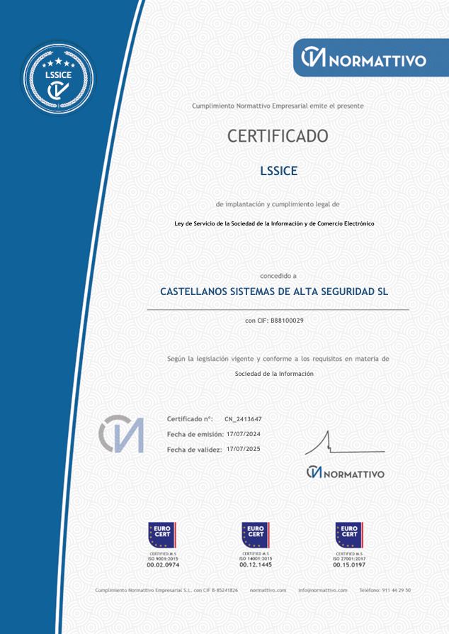 En CASTELLANOS SISTEMAS DE ALTA SEGURIDAD SL utilizamos cookies con el objetivo de prestar un mejor servicio y proporcionarle una mejor experiencia en tu navegación. Queremos informarle de manera clara y precisa sobre las cookies que utilizamos, detallando a continuación; qué es una cookie,